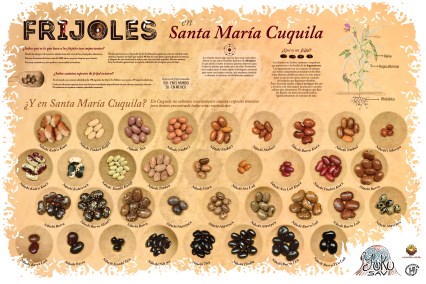 Este cartel muestra el trabajo realizado por el colectivo de jóvenes Yuku Savi quienes se han dado a la tarea de recuperar diferentes variedades de semillas de plantas de importancia cultural. Durante este trabajo el colectivo a encontrado 39 variedades de frijol de cinco especies diferentes. Este trabajo ha permitido recuperar y fomentar la siembra de al menos dos variedades que estaban al borde de la desaparición en la comunidad de Santa María Cuquila, Tlaxiaco, Oaxaca.